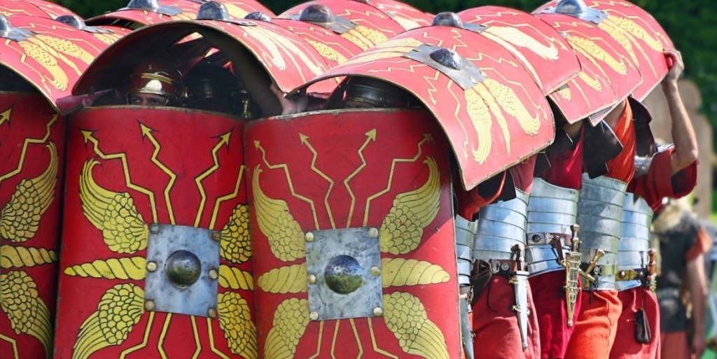 The Roman soldier’s shield, also called a scutum, was a large rectangular shield where the soldier could fit his whole body behind to avoid the oncoming arrows, darts, and spears. The typical Roman shield could push back against the enemy when linked together, forming a protective barrier (phalanx formation). Similarly, we as Christians are very effective when we link our faith together. The Roman soldier would apply oil to his shield daily to keep it in good condition. The symbolism here is that our faith requires frequent anointing of the Holy Spirit through prayer and worship.